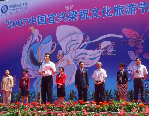 5月14日,“2007中国(宜兴)梁祝文化旅游节暨观蝶节”在宜兴隆重开幕。在开幕式上,陈万年校长将旅游实习基地铜牌授予宜兴市洪雅副市长,并表示祝贺。在会议期间,陈校长考察了宜兴市的景区,陈校长对宜兴这样的县级市拥有四个“AAAA级景区”(中国旅游景区最高等级)给予高度评价,并对beat365在线唯一官网旅游学院与宜兴市的合作前景表示乐观和信心。省旅游局、无锡市和宜兴市的主要领导会见了陈校长一行,对beat365在线唯一官网办学成就给予了高度评价和认可。