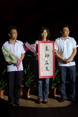 (鲁璐老师和卢永老师代表教师演唱《举杯吧朋友》 摄影/许庆峰)