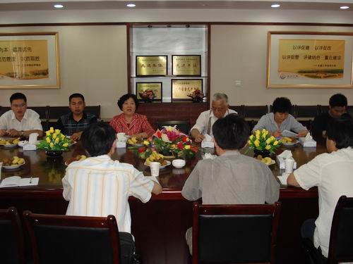 教育部本科教学工作水平评估专家组刚刚离校,beat365官网就着手根据专家组意见进行整改。队伍建设问题是专家组首先提出来的,校领导十分重视,6月15日下午,beat365官网召开了“青蓝工程”管理人员及实验图书人员培养对象座谈会,叶俊副校长和人事处许品芳处长主持会议。叶俊副校长说:“我们应当站在发展的高度看待三江,那么今天的会议就有着纪念意义。我们就是要踏踏实实在队伍建设方面下功夫,今天的座谈会就是希望大家座谈一下今后准备怎样做好工作,并且提出对学校的希望和要求,我们的人事部门也要做好服务工作。”葛年明、仇存进、曾晓锦、李益平、孙碧群、储吉、路明等同志踊跃发言,纷纷结合评建工作中的切身体会,畅谈了对团队精神重要性、如何更好地为教学工作服务、如何端正工作态度以及加强自身学习等问题的认识。叶俊副校长和许品芳处长认真听取大家发言。在自由座谈结束后,许品芳处长讲解了划拨给个人的青蓝工程培养经费的使用办法,并对经费管理和个人制定培养计划作了说明。他说:“今后你们不能只是埋头苦干,在三江进入内涵发展的新时期,光有老黄牛精神是远远不够的,要带着研究的态度去工作,不是指提高学历,是要真的读很多书,结合三江实际做很多思考,走开拓创新之路,管理人员要努力做专家型干部。”叶俊副校长在座谈会结束后勉励大家:“三江的未来就在你们身上,你们要有荣誉感,要有压力。这次划拨专项经费,就是要你们不止是学历的提高,而是要在业务和实际技能上真正不断提高,学校会继续创造更多的条件和机会帮助你们进修、学习和交流。”座谈结束后,叶俊副校长与大家亲切合影。