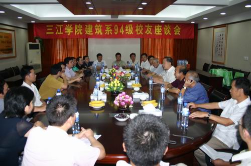 常务副校长骆志斌、校办主任周更生、建筑系主任李孝宋和副主任殷珊及相关老师参加了座谈会。骆志斌常务副校长首先对94级校友回母校参观表示热烈的欢迎,他向校友详细介绍了三江十几年来的发展情况。骆校长表示,如今三江在软硬件建设上取得了不少成绩,这些成绩来之不易,这要得益于我们坚持正确的办学指导思想。他最后表示,三江的发展离不开校友们的关心和支持,希望校友们继续关注母校的发展,为母校的今后更上一个台阶添砖加瓦。