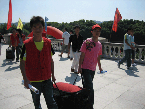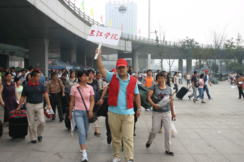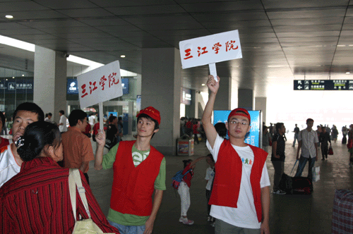 更让人感动的是,中文系有两名毕业生也返校加入到志愿者队伍中。他们是03级本科生邱俊杰和04级专科生刘斌。除了第一年作为新生报到以外,他们参加了每一年的迎新工作。记者从他们的班主任季丹军老师那儿了解到,他们回来参加迎新工作,一是因为对三江、对中文系有深厚的感情,想回来看看。二是因为他们很喜欢迎新时的氛围,在帮助新生的过程中,有一种三江主人翁的荣誉感。他们说,走上工作岗位后,他们亲身体会到社会对三江的肯定,对三江毕业生的肯定。他们以母校为荣,所以非常愿意继续为三江服务,继续为母校争光,他们随时听从母校的召唤,随时回来。
