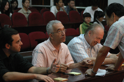 韩主任与外籍评委亲切交谈
