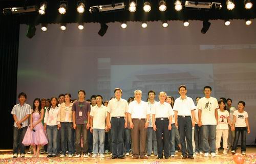 9月28日晚上6点30分,主题为“新的血液 新的梦想”的计算机系迎新生庆国庆文艺晚会在三江会堂举行。副校长、计算机系主任、软件学院院长王芝庆、以及计算机系、软件学院的其他领导王成均、佟振明、叶传标出席并在前面就坐。文艺节目开始前的入学教育分五项内容,由佟振明副主任主持。王芝庆副校长就专业教育进行了生动而亲切的讲话,王成均副主任宣读了计算机系英语四六级考试成绩表彰名单。教师代表、老同学代表、新生代表依次发言。随后,舞台的帷幕徐徐拉开,学校大学生艺术团的劲舞《ten minutes》把会场气氛顿时导入演出氛围。晚会分三个部分——今天、明天、后天,三副对联把整个晚会很好地串联:今天——迎新生笑逐颜开喜相逢,庆国庆百花齐放乐开怀;明天——看今朝莘莘学子,盼明日济济人才;后天——山美水美花美草美校园处处堪称美,天新地新人新事新师生个个喜迎新。这些对联分别成为每场设计独到、典雅的舞台背景上的文字主题,让人感受到组织者的匠心独到。民族舞《家乡美》清灵柔美,动漫表演《COSPLAY》滑稽搞怪,古筝演奏《雪山春晓》音色流美……,计算机系的这台晚会不止反映了计算机系师生的人才济济,还反映了一种和谐和凝聚。8点30分左右,晚会在大合唱《我们是一家人》中落幕,计算机系、软件学院的领导走上舞台亲切慰问演职同学,并与大家合影留念。