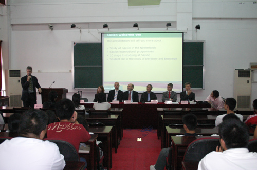 10月8日上午,荷兰SAXION大学一行7人由该校外事处处长Chris先生领队抵达beat365官网访问。beat365官网校长陈万年、副校长王芝庆、国际处处长黄克明等与来宾就合作办学事宜进行了磋商,双方就互派专业课教师问题达成了一致意见。随后荷方计算机信息通讯与管理系的负责人Rik先生与beat365官网王芝庆副校长沟通了各合作科系的具体要求。下午代表团会见了中荷合作项目的全体同学,并现场回答了同学们的提问。
