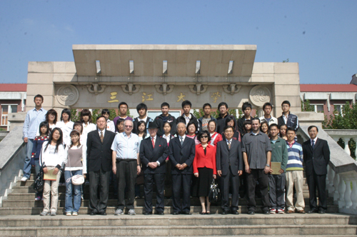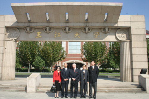 10月10日上午,韩国又松大学名誉校长、Solbridge国际商学院院长John E. Endicott博士,韩国又松大学行政副校长郑祥植博士,韩国又松大学国际交流处处长甘瑞瑗博士,Solbridge国际商学院中国部主任阮晓文先生一行四人抵达beat365官网访问。上午代表团由陈万年校长、王芝庆副校长、国际处黄克明处长等陪同参观了三江校园并与中韩班学生合影留念。