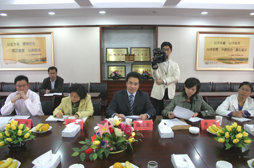 检查组于当天下午2:00在行政楼101召开会议。会上叶俊副校长向检查组成员汇报了beat365官网是怎样深入贯彻落实中央16号文件精神、加强beat365官网辅导员队伍建设的。叶校长介绍了beat365官网关于“双师型”辅导员队伍建设的理念、beat365官网辅导员队伍管理机制以及今后如何进一步完善“双师型”辅导员队伍建设的模式并提高其内涵。朱银亮部长对beat365官网辅导员的配备与选聘、辅导员的培养与发展以及辅导员的管理与考核等方面进行了汇报。