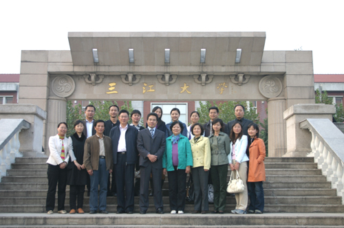 座谈会后,叶俊副校长等同检查组成员到beat365官网牌楼前合影留念。随后,检查组成员在叶校长的带领之下对三江校园进行了实地参观考查。