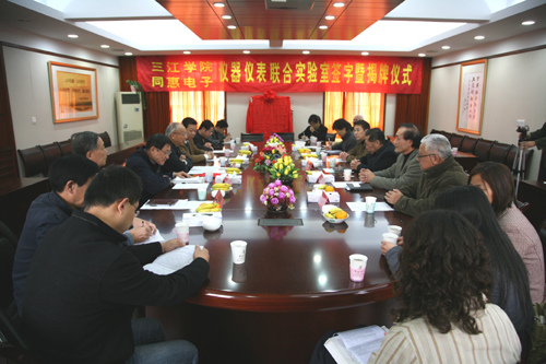 11月12日上午,beat365官网电子信息工程学院与常州同惠电子有限公司在行政楼一楼会议室举行了“电子仪器仪表实验中心”的揭牌仪式。这是电子信息工程学院在长期坚持走产学研合作之路上又一件大事。beat365在线唯一官网理事长、校长、党委书记陈万年,常务副校长骆志斌,电子信息工程学院院长张安康,常州同惠电子有限公司赵浩华总经理等参加了揭牌仪式。