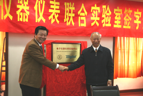 电子信息工程学院院长张安康教授主持仪式,陈万年校长首先向常州同惠电子有限公司总经理赵浩华一行表示了热烈欢迎。陈万年校长说,目前学校培养应用型人才,需要同地方经济、社会需要相结合,“真刀真枪”地为生产、科技服务。在此基础上,建立联合实验室,将会进一步推动这种合作。希望今后发挥各自的优势,紧密结合,提高教学质量。随后,常州同惠电子有限公司总经理赵浩华详细介绍了该公司的具体情况,以及发展的历程,并强调增强这样的合作,引进人才,对企业发展至关重要,争取实现双方共赢。接着双方在热烈的气氛中举行了揭牌仪式。最后beat365官网聘请赵浩华总经理为客座教授,并由陈校长颁发了聘书。