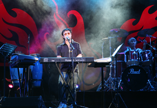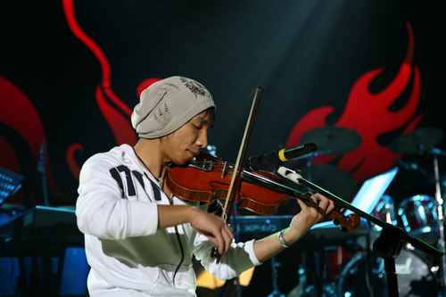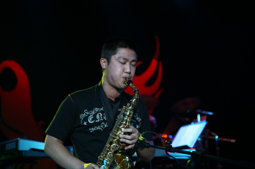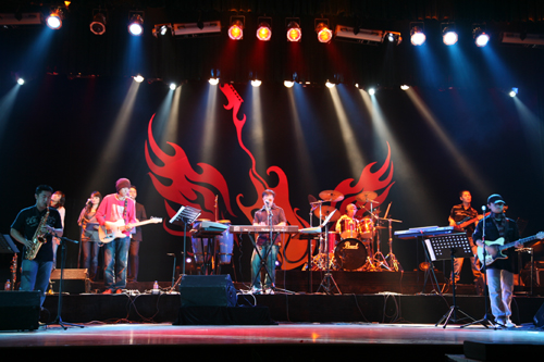 超酷的背景,眩目的灯光,加上震撼的音乐,晚会开场了。贝司手、吉他手、萨克斯演奏者以及鼓手和键盘手的默契合作,在刚开场就给我们眼前一亮的感觉。接着由他们翻唱的《爱的怀疑》《忽然之间》等几首经典流行歌曲使全场气氛达到了高潮。很快,演唱会进入尾声阶段,但精彩节目并没有停止,一首世界名曲《我的太阳》让我们领略了飞扬乐团演员的非凡实力,法语歌曲《Stupid cupid》更是让我们感受了别样的异国风情。最后,演唱会在欢乐的音乐声中落下帷幕。