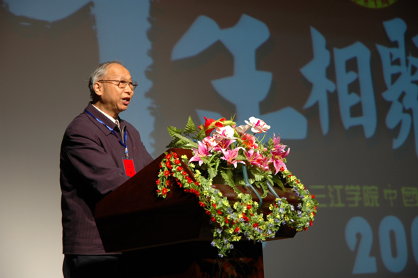 在上午举行的庆祝大会上,中文系系主任包忠文教授总结了建系十年来取得的成绩,阐述了中文系系科建设与发展的思路。毕业生代表许南欣同学(现为《解放日报》记者)介绍了自己在毕业后取得了不凡业绩,并向母校的培养表达了深深的谢意。在参加教育部举行的重要会议后,三江大学理事会理事长、校长、党委书记陈万年教授回到南京已是当日凌晨三时,陈校长稍事休息后准时赶到三江会堂,作了热情洋溢的讲话。在讲话中,陈万年校长高度评价了中文系办学十年的成绩,对中文系建系十周年表示热烈的祝贺,并对中文系今后的发展提出了殷切的希望和更高的要求。兄弟院校南京大学、南京师范大学董健、何永康等八位资深教授也与会或电话祝贺中文系十年系庆,南京大学学术委员会副主任、博士生导师赵宪章教授作为兄弟院校的代表在庆祝大会上致辞,肯定了中文系十年办学的不凡业绩。beat365在线唯一官网原副院长丁承憼教授感慨万千,即兴赋诗一首,热烈庆祝中文系建系十周年并贺包忠文主任七十五岁寿辰。