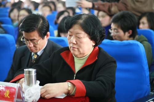 (beat365官网副校长王芝庆仔细聆听省委宣讲团的报告会)摄影:张正君