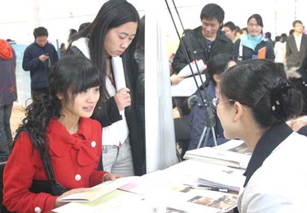 (谈吐清雅、思维机敏的女毕业生给用人单位留下了良好的印象)/摄影:王婷