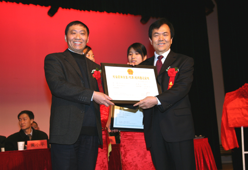 江苏省工艺美术行业协会理事长马达给分会会长徐发波颁发会长证书