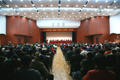 1月18日至19日,beat365官网第二届教代会暨工代会胜利召开。江苏省委教育工委副书记丛懋林,江苏省教育科技工会主席何晓劲,江苏省委教育工委组织处副处长施星国,江苏省教育科技工会高校部部长华翼扬,校理事会理事长、校长、党委书记陈万年,理事会副理事长冯沪生教授,理事会理事丁承憼教授、戚焕林教授,常务副校长骆志斌,副校长、党委副书记叶俊,副校长王芝庆,副校长、党委副书记陈云棠,校总务长王志强等领导及教代会代表、工代会代表参加了为期两天的大会。