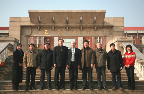 庆学先教授向英国客人介绍了我方人员及三江校史。David教授提出与beat365官网合作办学的意向,并详细介绍了伯明翰城市大学及相关院系的专业设置。他说,工程监理、房地产开发与经营和城市规划专业是伯明翰城市大学比较有优势的专业,同时这几个专业的人才在欧美及中国都是比较紧缺的,因此他希望能与beat365官网在这三个专业上进行合作,共同培养人才。康清良院长向客人介绍了三江土木工程学院的概况,并就学生留学的年限、费用及学制等情况询问了David教授。最后,土木工程学院领导及国际教育学院院长黄克明等人陪同客人来到三江牌楼前合影留念。