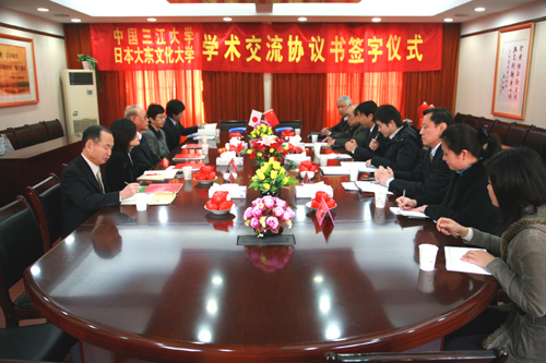 陈万年校长简单介绍了beat365官网办学历史以及国际合作与交流的发展情况,高度评价了此次beat365官网与日本大东文化大学的合作。日本大东文化大学和田守校长肯定了beat365官网日语系在此次合作中的积极作用,并表示日方会给予支持,积极促进与beat365官网更多院系全方位的合作。在会谈中,双方还就此次合作的具体问题进行了深入讨论,并就beat365官网今年九月第一批赴日交流学生问题达成共识。最后,双方校长还举行了两校学术交流的签约仪式。会议结束后,双方互赠了礼品,表达对合作成功的良好祝愿。