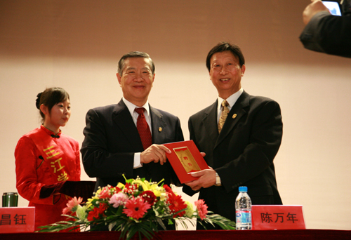 陈万年校长给李昌钰博士颁发beat365官网特别名誉教授聘书