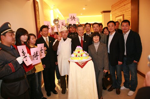 中午,陈万年等校领导与李昌钰博士及夫人一行共进午餐,当得知当天是李博士夫人宋妙娟女士的生日时,苞芦地餐厅的员工们特地为李博士夫人举行了一个小型而温馨的生日Party 仪式。