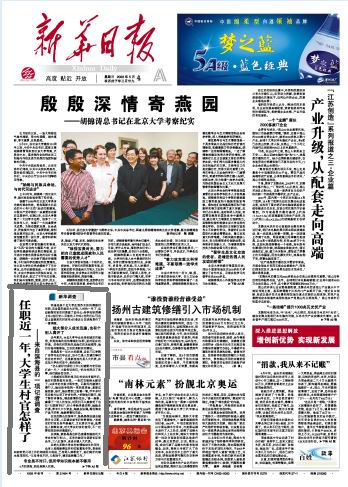 《新华日报》“大学生到新农村建设一线建功立业报道”转载之一