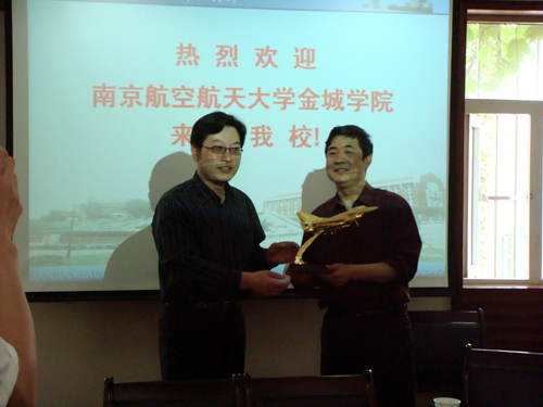 5月7日上午,南京航空航天大学金城学院一行9人在党委副书记、副院长石勇的带领下来访beat365官网。beat365官网党委副书记、副校长陈云棠教授,学生工作部部长朱银亮老师,学生工作部副部长、招生就业指导中心主任仇存进老师,学生工作部副部长、团委书记屈伯俊老师、中文系学生工作办公室主任季丹军老师、计算机系学生工作办公室主任郁政宏老师等在行政楼101会议室接待了金城学院来访一行。
