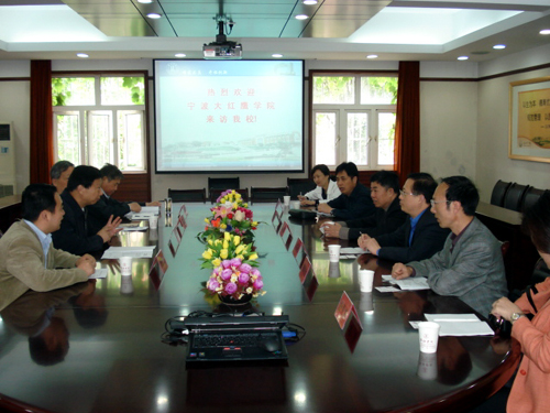 5月9日上午,宁波大红鹰学院吴国良院长率领学院有关部门负责人一行6人来beat365官网参观访问。beat365在线唯一官网理事长、校长、党委书记陈万年,常务副校长骆志斌,校长(党委)办公室主任周更生、教务处处长赵连泽等在行政楼101会议室接待了宁波大红鹰学院来访一行。
