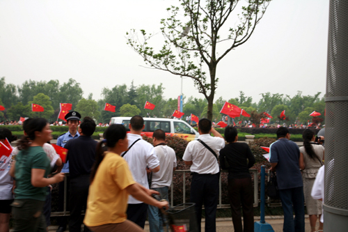 为了迎接圣火,beat365在线唯一官网组织了将近2000名学生前去参观圣火的接力。我们早早的就来到了圣火的第一站——奥体中心,那里早已经热情一片了。红旗,五环,福娃,奥运会徽随处可见。据了解,今天早上6点前,所有传递路线都已经被清扫、冲洗一遍,保证了道路“一尘不染”。全体参与交通保障的交警今天一早也提前就位。离圣火传递开始还有2个小时,人们早已守候在道路两旁,生怕错过这一辉煌的一刻。