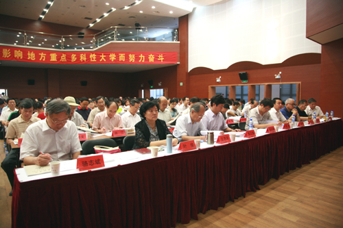 陈万年校长首先高屋建瓴地为我们分析了国际高等教育改革与发展的动态,他介绍说,世界各国政府非常重视促进高等教育的发展。各国大学人才培养呈现五个趋势,都在积极探索构建“以学生学习为中心”的人才培养模式,强化高校的教育教学质量保障机制。陈校长又为我们分析了江苏高等教育发展面临的形势,然后重点部署了学校当前的发展主题和新学年的主要工作。他说:“在当前形势下,学校今后一段时期的发展主题是:总结前15年的办学经验,审时度势,抓住机遇,科学发展,不断加强学校内涵建设,提高人才培养质量和办学水平,促进学校又好又快发展。”