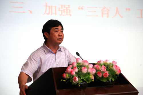关于加强“三育人”工作,进一步提高人才培养质量的问题,他说:第一,要加强师德建设,发挥教书育人作用。第二,要加强作风建设,发挥管理育人、服务育人的作用。第三,要加强大学生思想道德建设,发挥学生的主体作用 。最后,他号召大家继续发扬 “唯实求真、开拓创新”的三江办学精神,齐抓共管,形成合力,推进“三育人”工作,为培养和造就更多适应社会需要的应用型人才作出更大贡献。