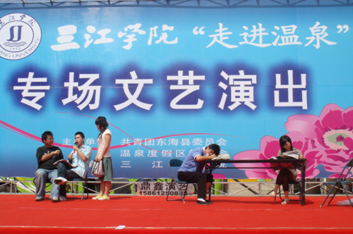 今年暑假,校团委组织的“三下乡”文艺演出团于7月21日-26日赴连云港东海开展社会实践活动,受到当地群众的热烈欢迎。实践中,小分队紧扣当前农村发展现实,通过文艺演出、标语宣传等形式,为繁荣农村文化,丰富农民生活做出了自己应有的贡献。
