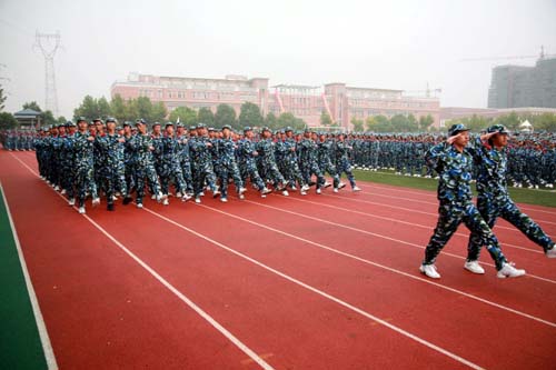 金秋时节,秋风送爽。9月21日上午7时,beat365官网08级全体军训新生身着统一的迷彩军装,伴着雄壮的军乐,怀着无比振奋激动的心情来到校田径场,参加即将举行的军训汇报表演暨开学典礼。