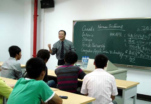 我院邀请了相关兄弟院系领导王尧、周敏倩、王健、佟振明、蒋宜群以及国外合作大学代表裘炜军、闵海宁、刘青作为嘉宾参加了此次开学典礼。在开学典礼正式进行前,我院将新生按专业、国别分组,分别请嘉宾们介绍了国外合作方大学的具体情况以及专业方面的要求,使新生一入学就对本专业以及今后出国必须达到的要求有一个全面、综合的了解,做到心中有数,目标清晰。