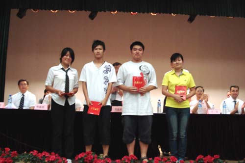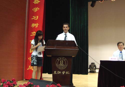 开学典礼由周建清副院长主持。院长助理陶长安教授以及外教代表STEVEN DIAMOND 及BROOKE STEDMAN也发表了热情洋溢的讲话,勉励新同学在大学这一人生的转折点,认真学习,培养能力,提高自已的综合素质,为今后的人生打开一扇通往世界的窗户。06、07级学生代表以及08级新生代表也都上台发言。典礼中,还对我院在全国大学生英语竞赛中获得好成绩的四位同学进行了表彰和奖励。