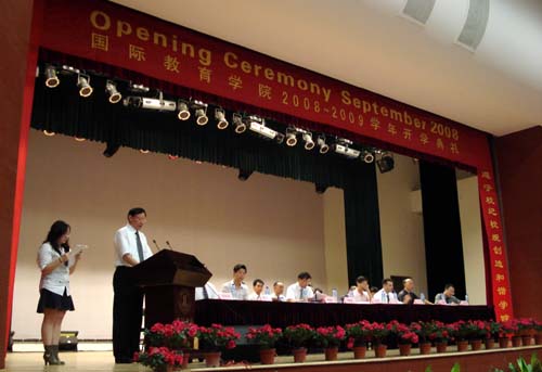 金秋之季,丹桂飘香,国际教育学院喜迎新学子。2008年9月21日16:30,国际教育学院在三江礼堂隆重召开2008级开学典礼,热烈欢迎新同学的到来。