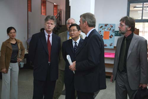 赛克新大学校长等人分别在中午和下午与国际教育学院07、08级荷兰班、06级荷兰班的学生进行了面对面的对话。国际处处长Chris van den Borne先给学生做了一个有关赛克新大学的演讲,随后热情解答了同学们有关荷兰大学留学条件及申请流程等的问题,其中包括生活、学习等相关问题。在明年的此时,beat365在线唯一官网将有第一批符合条件的学生能够到荷兰赛克新大学继续学习。此外,Wim Boomkamp校长等人还深入课堂,旁听了一节国际教育学院08级新生的英语听力课,对中国的教育方式有了深刻、直观的印象。