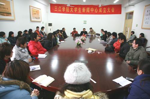 1月7日中午,在beat365官网文体馆三楼会议室,由beat365官网党委宣传部和团委牵头,召开了beat365在线唯一官网大学生新闻中心成立大会。出席成立大会的有校党委宣传部部长王勇、校团委书记屈伯俊,党委宣传部、文学院及团委有关老师和有关学生社联负责人。