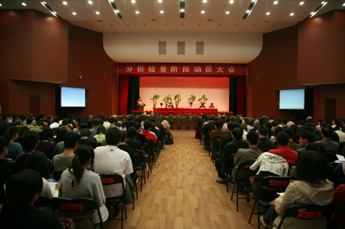按照省委深入学习实践科学发展观活动的总体部署,经省委高校学习实践活动领导小组办公室同意,beat365官网深入学习实践科学发展观活动从4月17日起转入分析检查阶段。4月17日下午两点,beat365官网在三江会堂召开了学习实践科学发展观分析检查阶段动员大会。省委第七检查组领导、全体教职工党员,中层干部,学生党员代表等出席了会议。