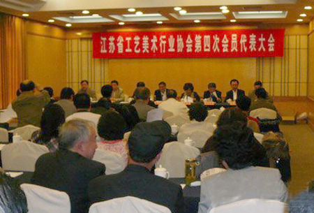 会议由省工艺美术协会副理事长、南京市工艺美术总公司文洁成总经理主持。江苏省民政厅民间组织管理局李健处长、江苏省经贸委行业发展处方超英副处长出席会议。分布于全省各市的会员代表共83人参加了会议。