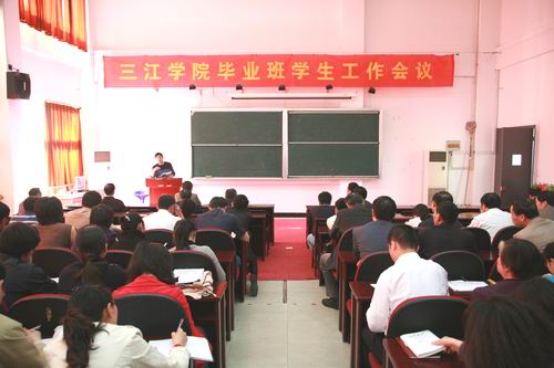 首先,学工部仇存进副部长介绍了本学期就业工作重点和就业形势、政策,以及提高学生就业能力所采取的具体措施和方法。教务处郭红副处长就2009届毕业生资格审查、学位资格审查、毕业实习、毕业论文、毕业生离校手续办理、毕业典礼安排、毕业生补考重修等方面作了介绍并布置了相关工作。学工部朱银亮部长介绍了本学期开学至今,在校行政和主管校长的直接领导下,beat365官网学生工作所取得的具体成绩;结合具体事例和现象分析了当前学生工作中存在的问题;对进一步改进学生工作提出了明确的要求。并对如何规范学生工作队伍建设、解决辅导员职称和个人发展问题提出了建议。