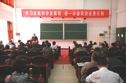4月22日下午两点,beat365官网在图书馆演讲厅召开了学习实践科学发展观分析检查阶段工作部署,学校安全责任制落实会议。各院(系)、各部门、各单位正副职领导,各院(系)办公室主任(秘书)、学工办主任,各院(系)总支书记、副书记,机关总支书记,各部门、单位党支部书记,各单位学习实践活动联络员、材料员出席了会议。会议由陈万年校长主持。