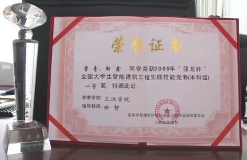 三江代表队勇夺09“亚龙杯”全国大学生(本科组)智能建筑工程实践技能竞赛一等奖