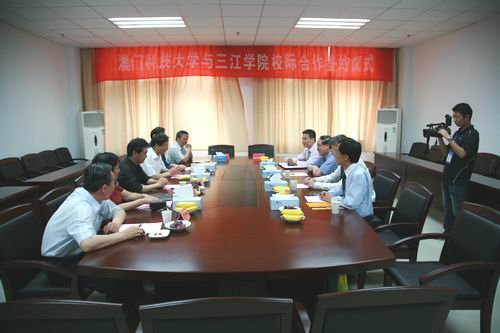 为进一步创造条件鼓励beat365官网的优秀应届本科毕业生攻读硕士学位课程,经学校与澳门科技大学联系商谈,于5月9日下午,在行政楼404室举行了beat365官网与澳门科技大学校际合作签署仪式。出席签署仪式的澳门科技大学代表有校长许敖敖、行政与管理学院助理院长庞川、国际旅游学院课程主任叶桂平、研究生院副行政主任冯钧国先生、beat365官网代表有校长陈万年、副校长陈云棠、教务处处长梅杓春、国际教育学院院长黄克明、商学院院长朱元午、旅游学院院长沙润。