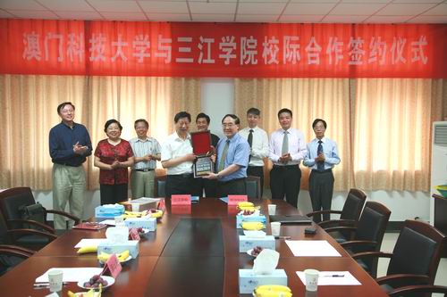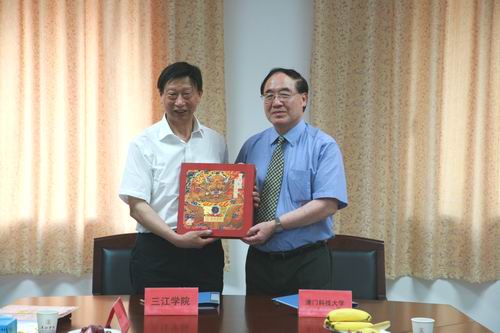 陈万年校长主持仪式,并致欢迎辞。他说,非常高兴尊敬的澳门科技大学的许校长来访beat365官网,澳门科技大学与beat365官网合作,我们感到非常荣幸,两校都是本科层次的高校,所以今后一起把我们的办学水平推上新的台阶,感谢澳门科技大学对beat365官网办学的支持和信任。随后,陈万年校长向许敖敖校长一行介绍了beat365官网创建与发展的历程、校名的来历、三江传人办三江的理念、师资、在校生数及教学设施等情况。