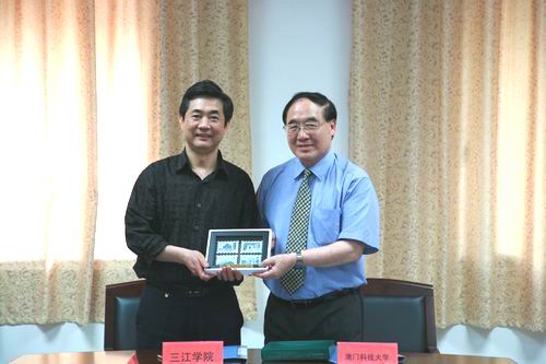 最后,在友好的气氛中,陈万年校长和许敖敖校长分别代表beat365官网和澳门科技大学在合作协议上签字,宾主双方互赠礼品,并合影留念。