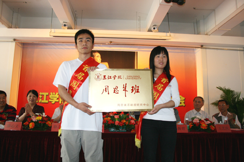 我院“周恩来班”班长和团支部书记上台接牌