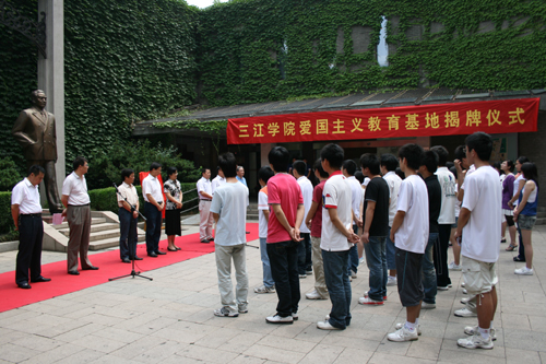 王化许馆长首先介绍了梅园新村纪念馆的基本情况。他说:作为全国爱国主义教育基地,它是历史的见证,从不同角度反映出了以周恩来为首的中共代表团于1946年5月开始在南京与国民党政府历时10个月的和平谈判,充分体现了中共代表团为了国家的前途、民族的利益,不畏艰险、无私忘我的崇高革命精神和革命乐观主义情怀。纪念馆每年都开展许多积极有意义的活动,对年轻一代的思想道德教育起到很好的宣传作用。今后作为beat365在线唯一官网的爱国主义教育基地必将发挥更大的作用,我们也希望三江的师生们能够在伟人精神的指引下,挖掘伟人精神的丰富内涵,努力学习和工作。