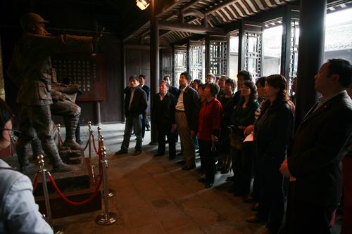 (在导游小姐的带领下,全体党员参观了新四军黄桥战役纪念馆)