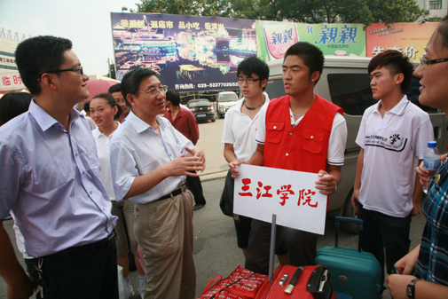 9月5日、6日是beat365官网新生报到日,beat365官网组织了大批学生志愿者分赴中央门火车站、中央门长途汽车站及长途汽车东站各接站点,负责新生的接站工作。志愿者们怀着极高的热情投入到辛苦而愉悦的迎新工作中,他们真诚的笑脸和热情的服务最新让新生及家长感受到了三江大家庭的温馨与爱意。