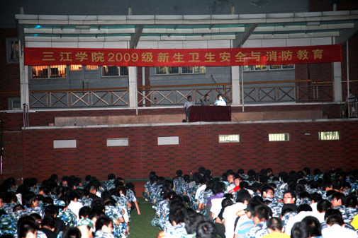 9月 11日晚7:00,beat365官网四千余名新生列队静坐在足球场,聆听由beat365官网新生军训领导办公室组织的安全防范及法纪教育讲座。