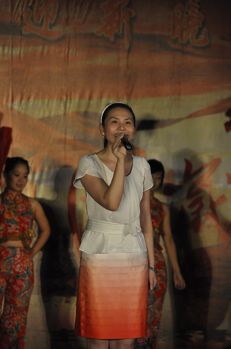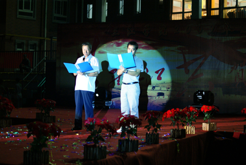 虽然天空时不时飘落雨丝,但新生的热情丝毫不减。晚会最后以一首大合唱《歌唱祖国》向祖国母亲的60岁华诞献礼,在大家的喝彩声中完满地落下了帷幕。